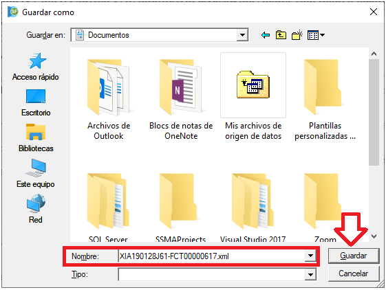 Debera elegir el directorio donde desea se guarde el XML del documento.