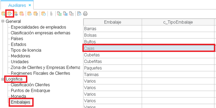 Sobre los registros de sus embalajes seleccionen cualquiera y modifíquenlo para agregar su correspondiente clave del SAT.