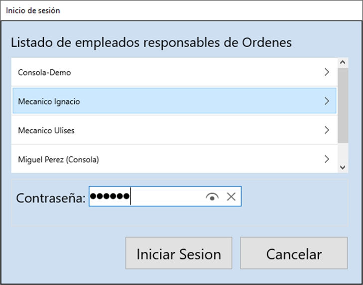El empleado que elegiste como responsable de la orden debe estar asociado a un usuario dedicado para la consola de mantenimiento.